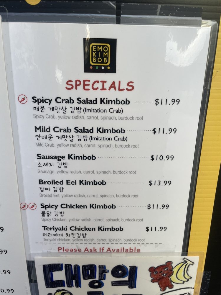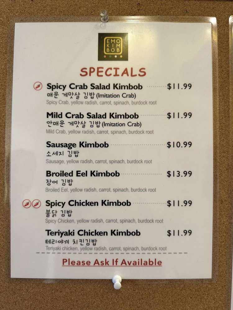 E-Mo, located in New York City, offers a variety of options for takeout, including vegan and limited vegetarian choices. Customers rave about the fresh ingredients and friendly service. The cash-only establishment is known for its delicious and authentic kimbap, with options like mild tuna and vegetarian selections. Patrons appreciate the generous portion sizes and quick service, making it a go-to spot for a quick and satisfying meal. With an emphasis on sustainability and removing styrofoam packaging, E-Mo stands out for its commitment to quality and taste. If you're in the mood for flavorful and filling kimbap in a casual setting, E-Mo is a must-try in Koreatown.